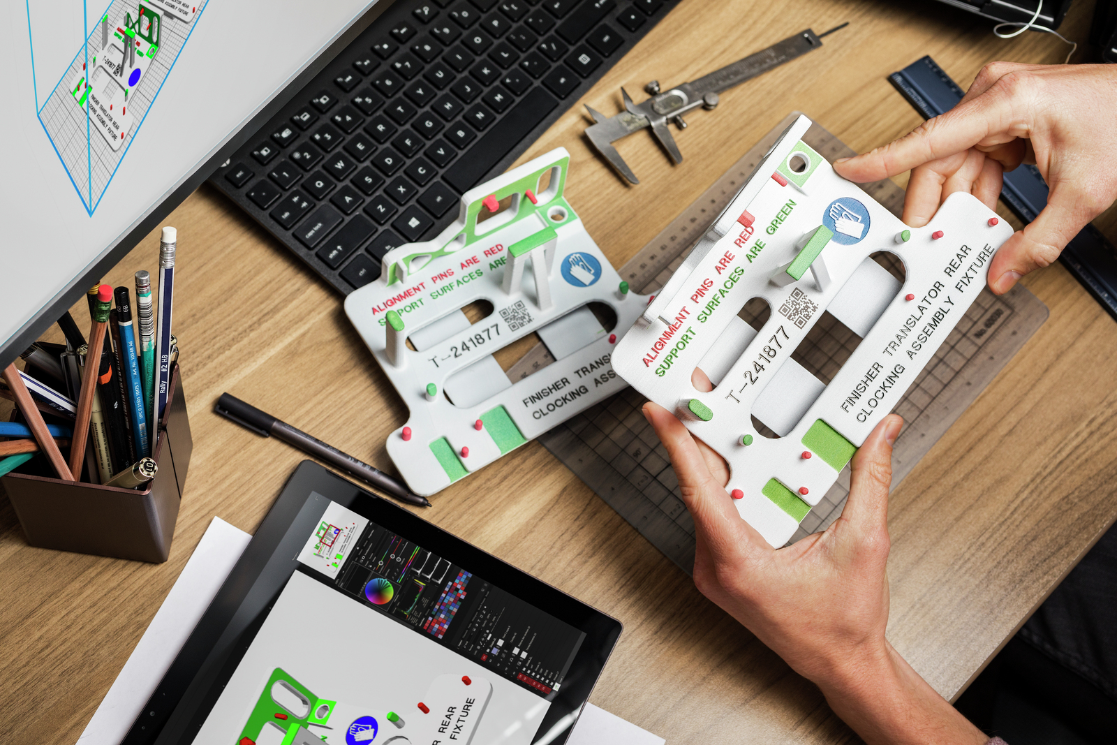 Wenn Sie Schablonen oder Halterungen zur Produktion Ihrer Bauteile einsetzen, wissen Sie auch, wie teuer Verschleiß und Lagerung dieser Teile sind. Hier zeigen wir Ihnen, wie Sie mit 3D Druck Werkzeuge, Vorrichtungen und Betriebsmittel kosteneffizient und maßgeschneidert herstellen können – auf Abruf und voll automatisiert.